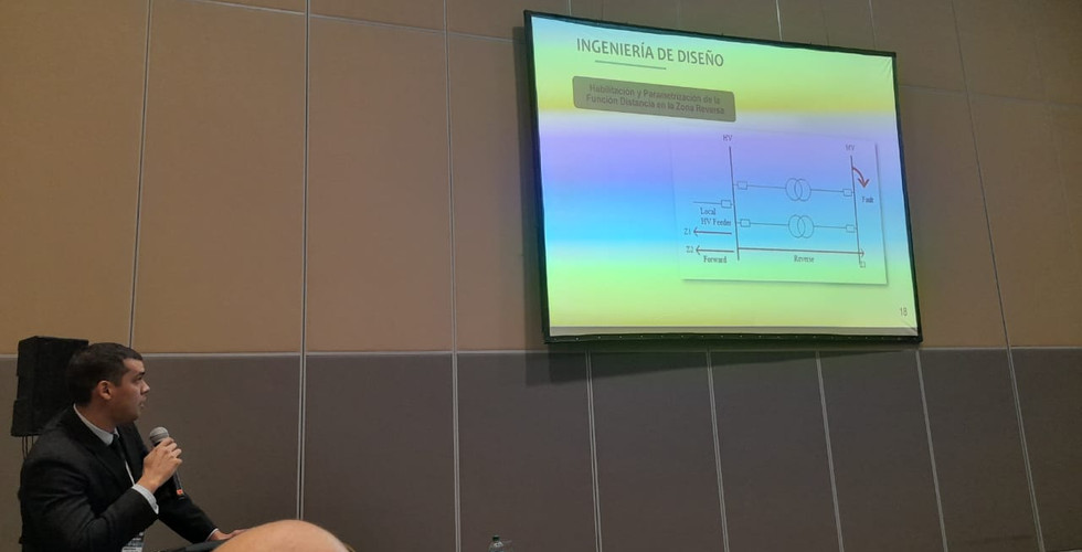 En la plenaria del Seminario XV SESEP, el docente investigador MSc Mario Arévalo y el egresado Ing. Sebastián Villalba presentaron su trabajo de investigación denominado “Análisis del Sistema de Protección de los Transformadores de Potencia de una Estación Nivel 220/66/23 kV del Sistema Interconectado de la ANDE”.